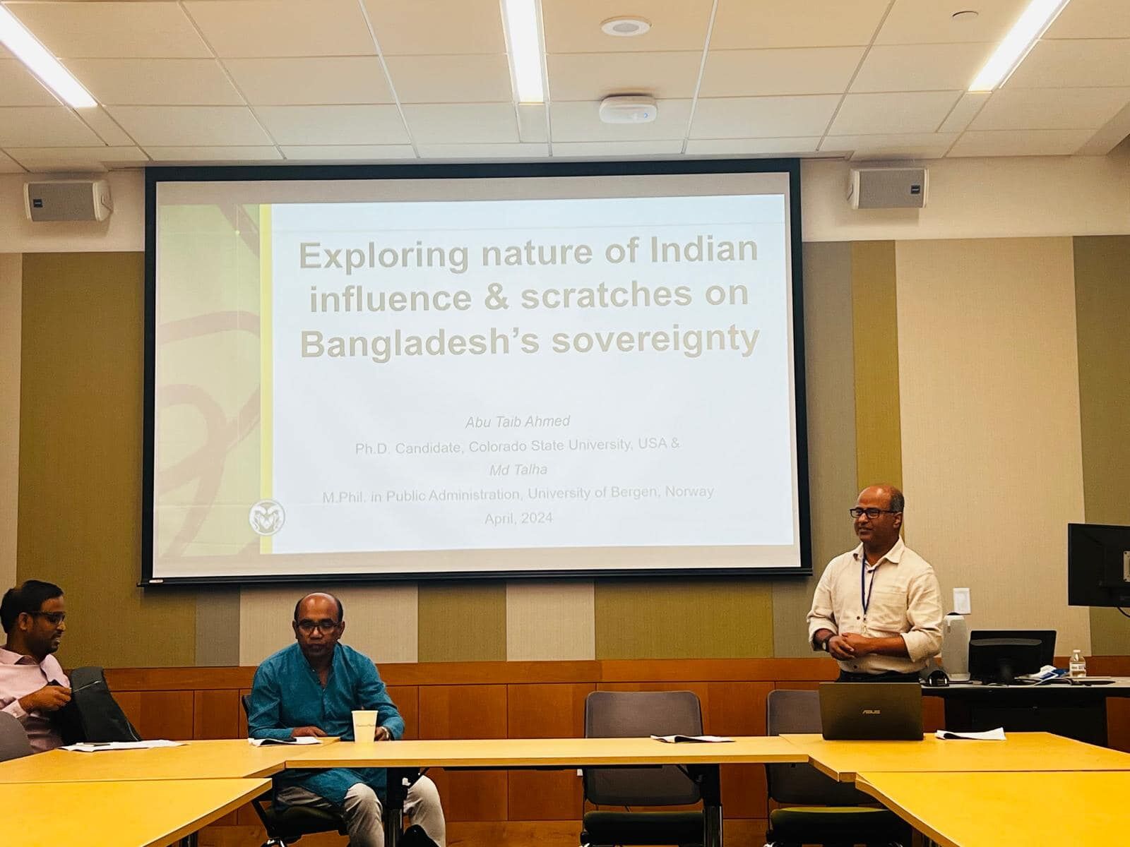 Presenting paper titled ‘Exploring nature of Indian influence and scratches on Bangladesh’s sovereignty” at the Bangladesh Conference 2024: Critical Perspectives organized jointly by AIBS and South Asia Institute of University of Texas-Austin.
